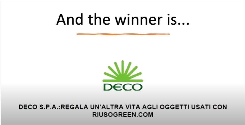 Pubblichiamo il video dell’evento di premiazione on line - che si è tenuto il 25 marzo - in cui Deco S.p.A. è stata proclamata vincitrice della dodicesima edizione della Settimana Europea per la Riduzione dei Rifiuti 2020 (SERR) con l'azione “Regala un’altra vita agli oggetti usati su www.riusogreen.com” .